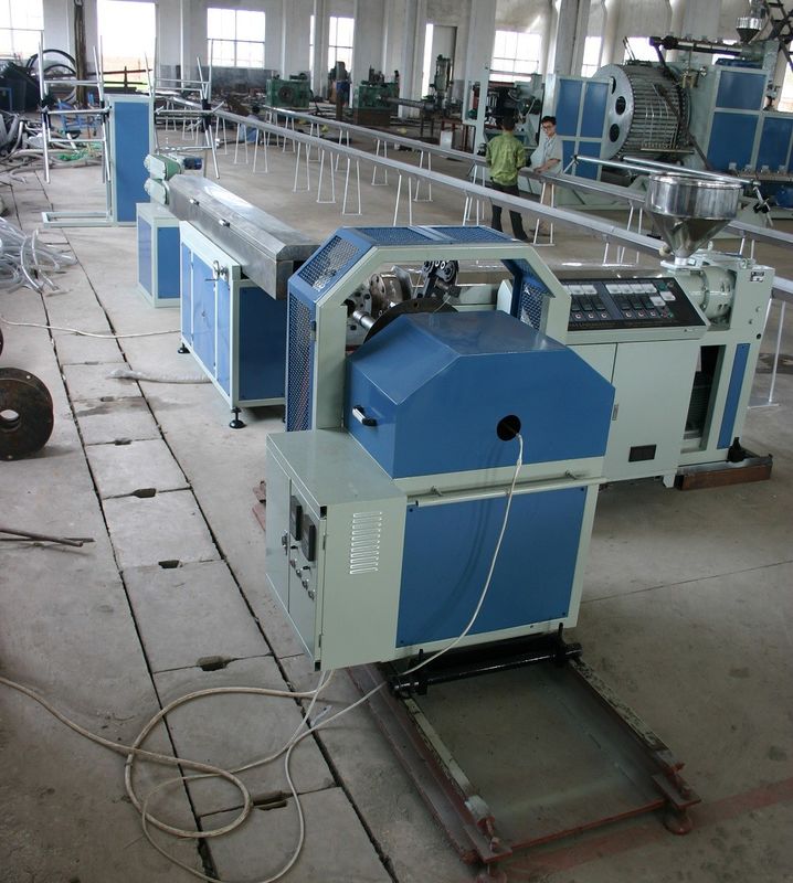 PVC 철강선 강화한 관 밀어남 선은 주로 압출기, 철강선 감기는 기계, 물 살포 탱크, 운반 떨어져 기계 및 와인더를 등 포함합니다.