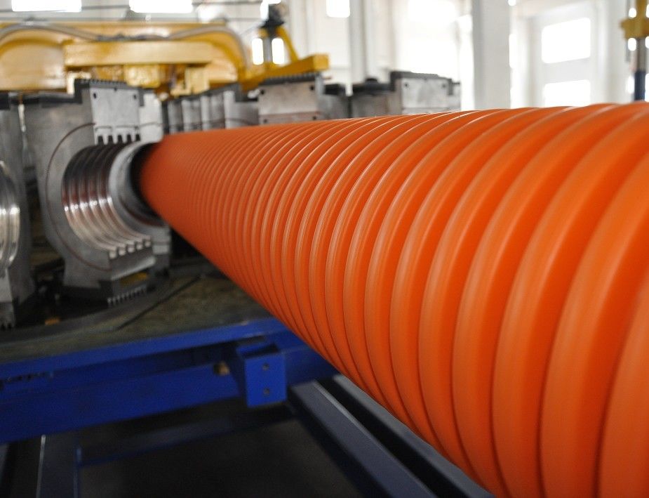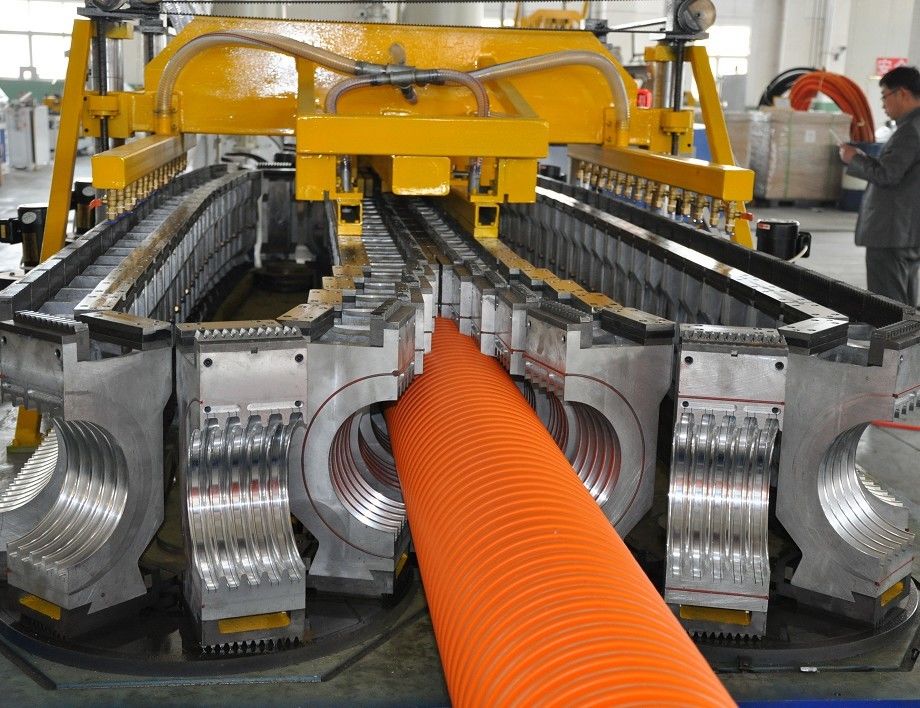 SBG250 (ID90mm - 250 밀리미터) 광택처리 다이 헤드를 질화처리하면서, 중벽 파형관 라인이 2 단일의 스크류 압출기, 중복 채널 구조를 채택합니다.
