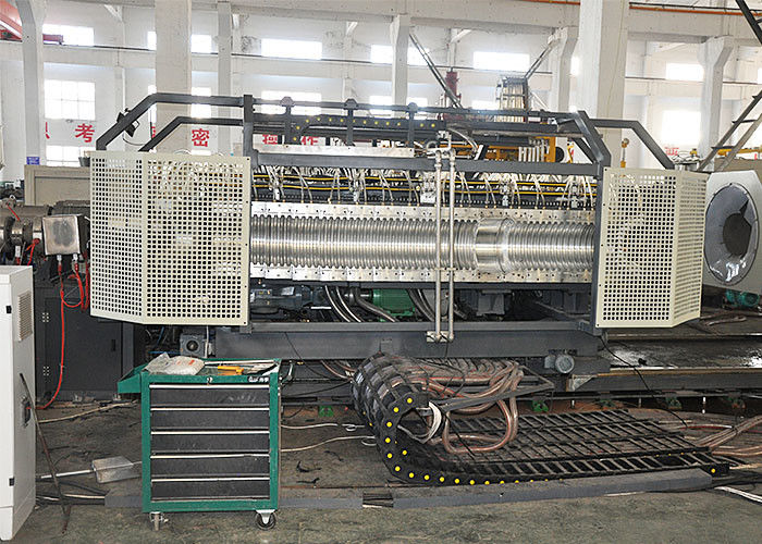 성능과 장점 : 이 생산 라인은 산둥 후아수 플라스틱 기술 사의 제 삼 세대 개량품이고 메인 머신의 압출량과 조관 속도가 매우 이전 제품 과 비교하여 20-40%만큼 증가됩니다. 그것은 온라인 플래어링을 실현하고 성형 벨로우즈 제품에 대한 모든 성능 인덱스를 보증할 수 있습니다. 지멘스 인간 기계 인터페이스 제어부 시스템은 안정적 구축 성능, 높은 자동화 정도와 단순 작동을 가지고 있는 전직선에서 채택됩니다.