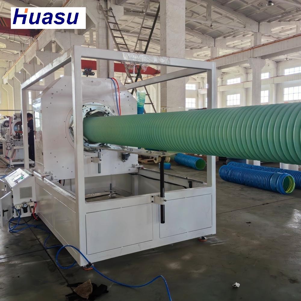 산둥 HUASU가 선보인 노류 파이프 라인은 그들의 제품 라인의 최신 발전을 나타냅니다.이 최신 반복은 두 extruder 출력 및 파이프 생산 속도 두 가지의 상당한 증가를 자랑이전 버전에 비해 20%에서 40%의 개선이 이루어졌습니다.온라인 벨링 기능의 추가로 결과 인 물결 파이프 제품의 품질과 성능이 더욱 향상됩니다..